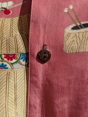 机には菊の華も飾られており、日本の文化的な暮らしを切り取った着物柄です