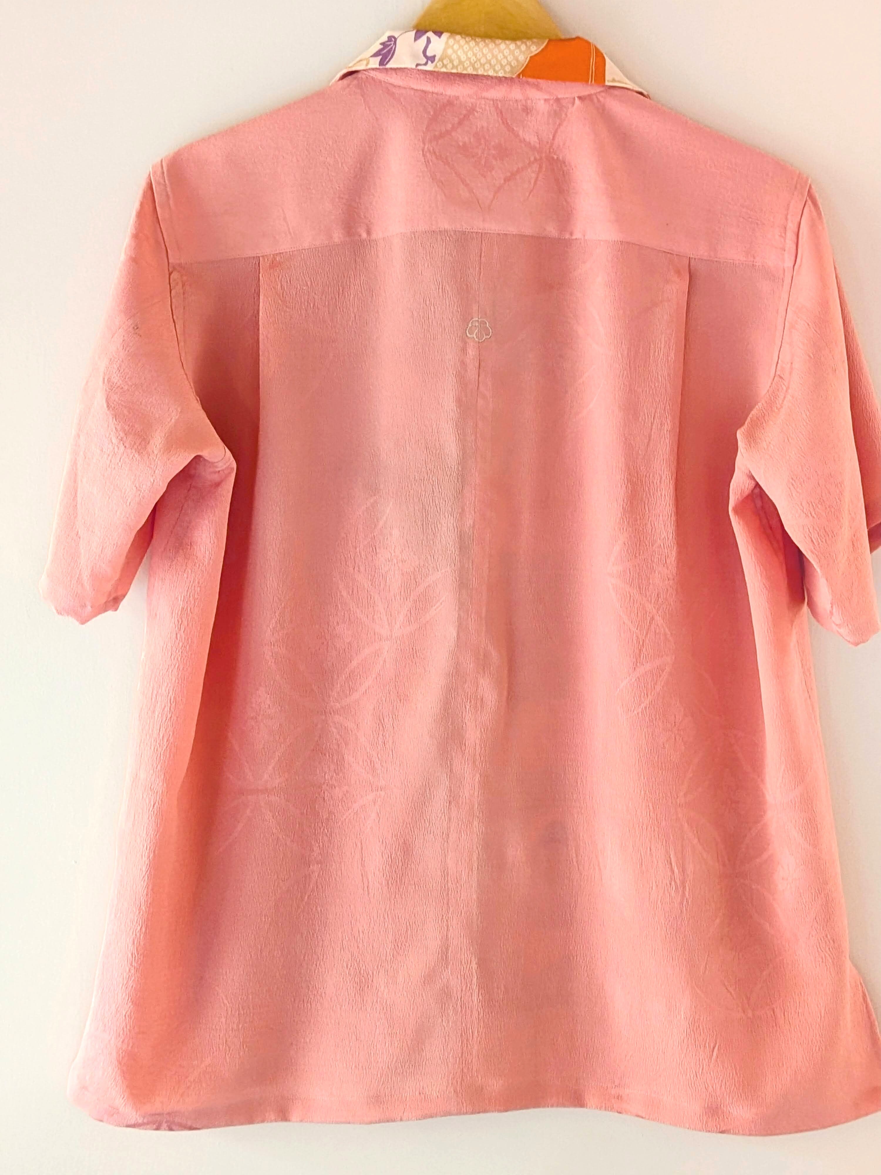 やわらかな撫子色を地に、古典の大花丸文を地紋として織り込んだ、上品なアロハシャツ